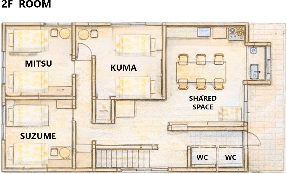 | ベッドサイズ | 各部屋に2台ずつ(セミダブル×2) |