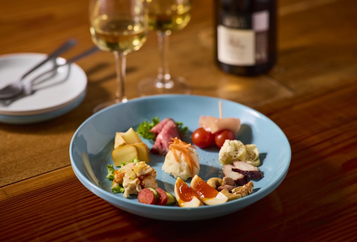 自家製の燻製つまみや、チーズや生ハムなどのちょい飲みに