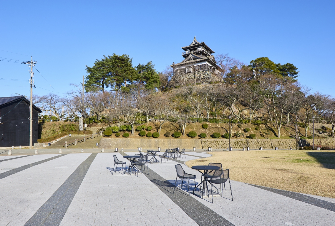 Bunbunの目の前で丸岡城のふもとに広がる公園。